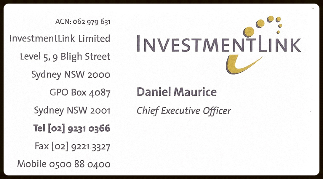 By 1995 OTC had been absorbed into Telstra and become a much less attractive work environment. I was looking for a change and somehow got a left field job as the first CEO of a new start-up company. InvestmentLink had been established by a group of Australian fund managers to provide electronic data links to the financial planners who sold their investment products.