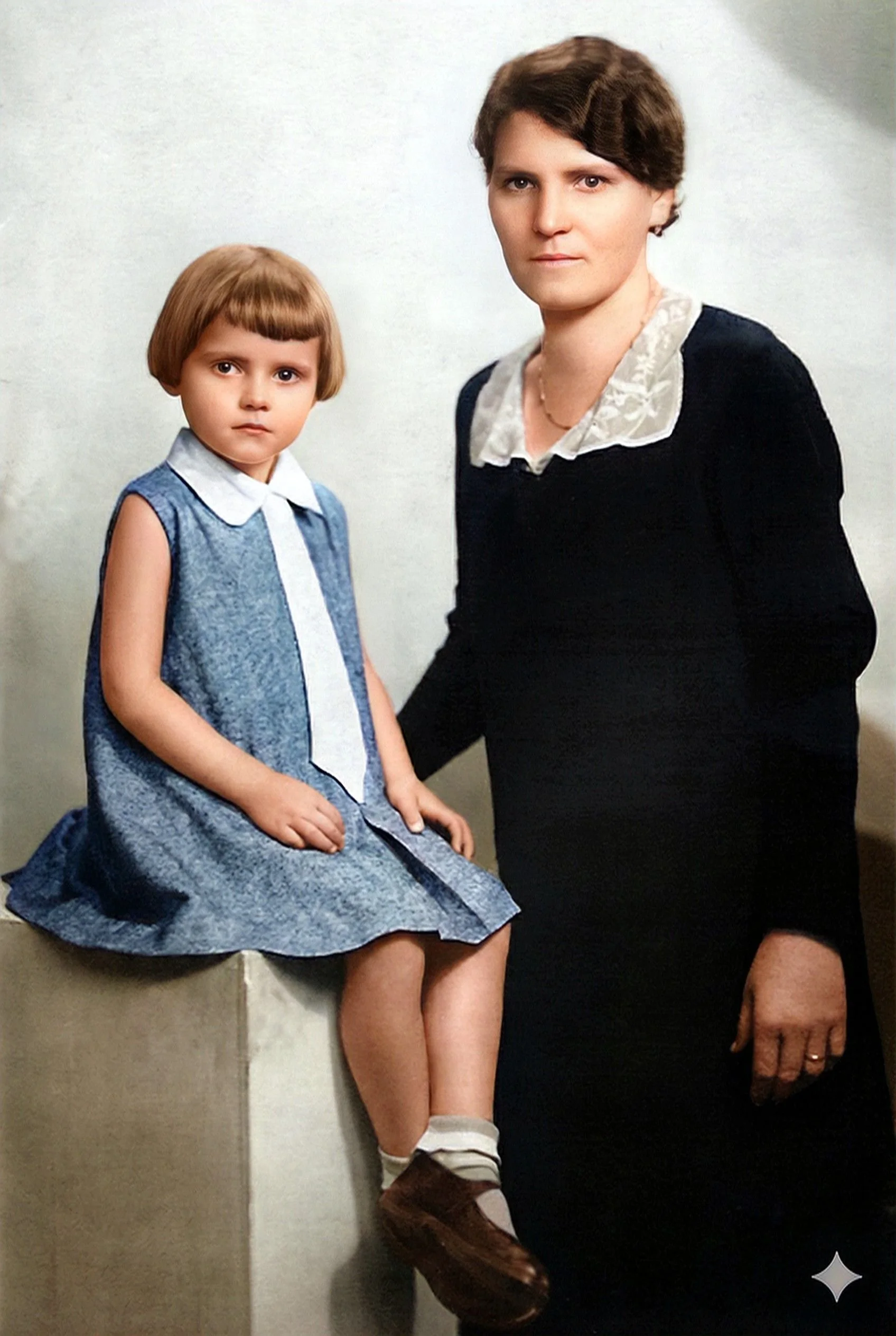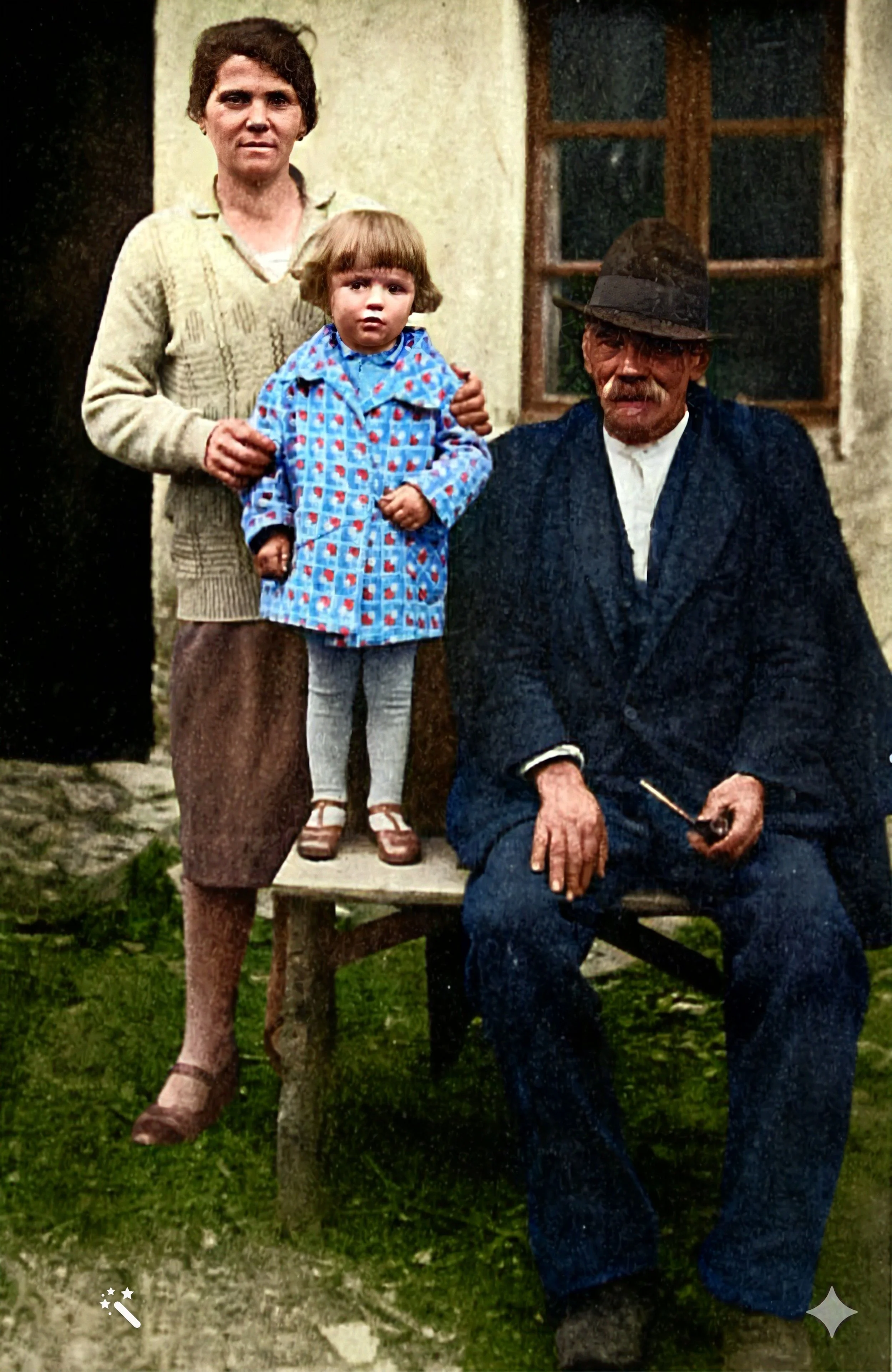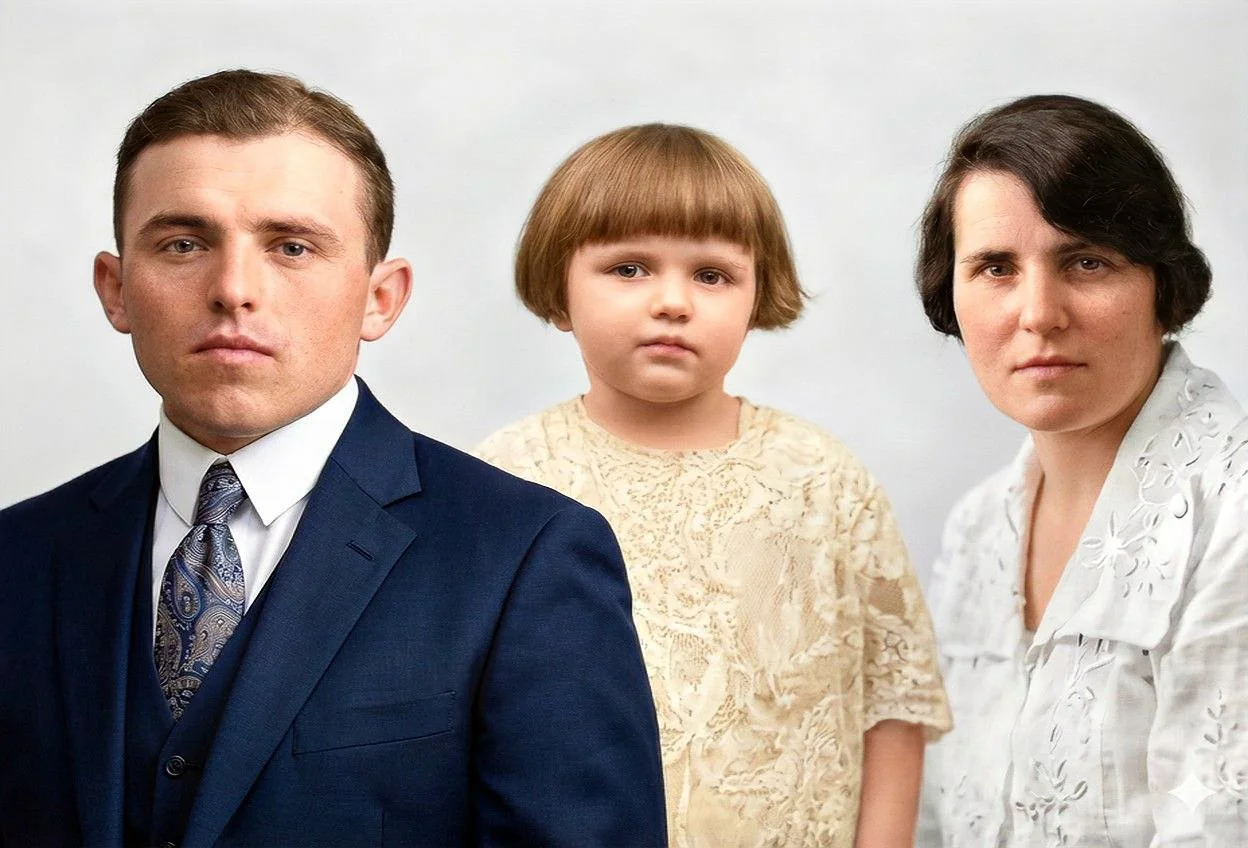 Livia, her father Anton Reja and Danila about 1930 (colorised)